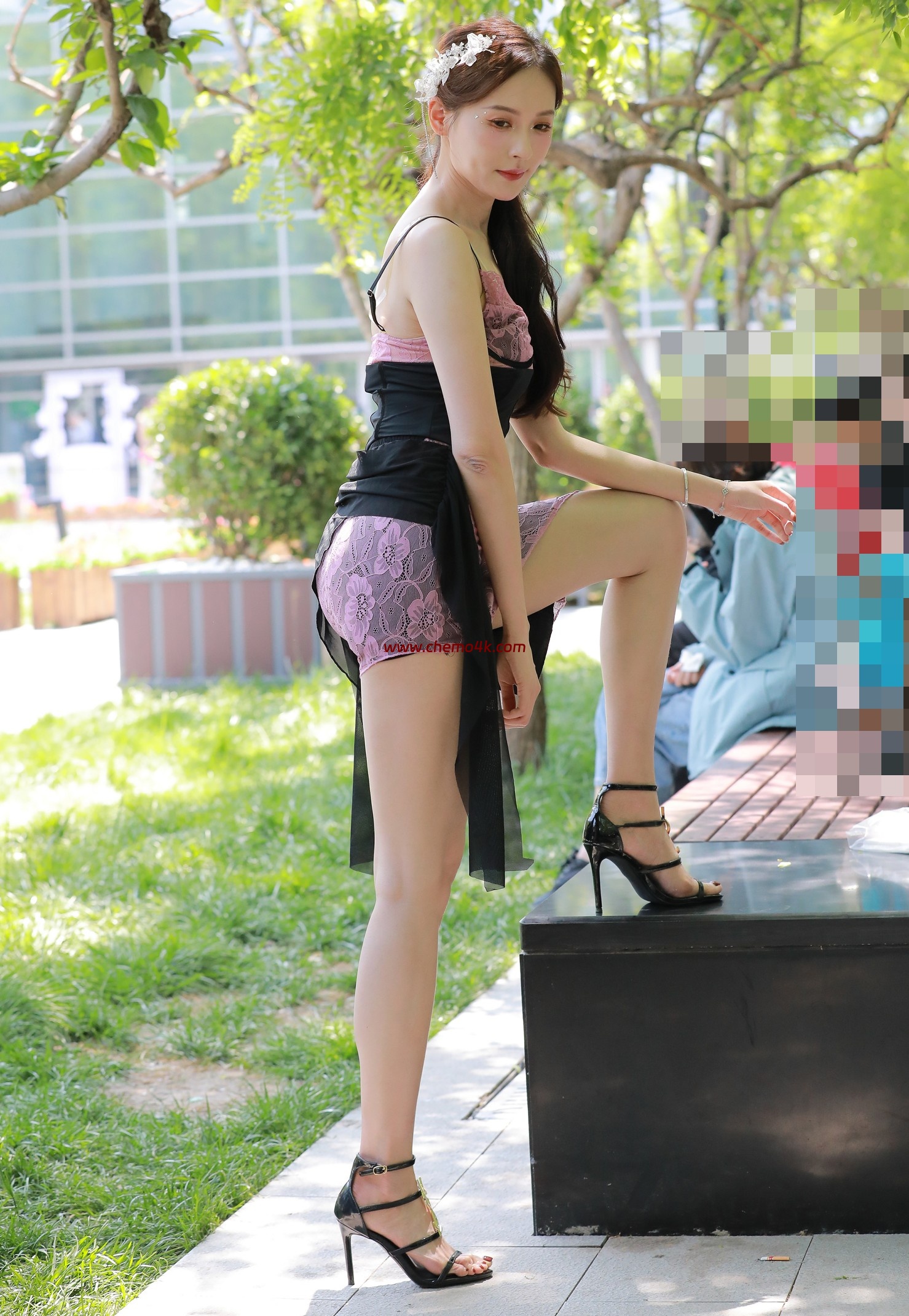百万粉丝网红车模小龙鼠外拍写真花絮照片,大尺度露背露胸裙、美腿光脚特写,放大可看清肌肤纹理,高清4K分辨率原图无修生图下载 照相机型号 Canon EOS 5D Mark IV